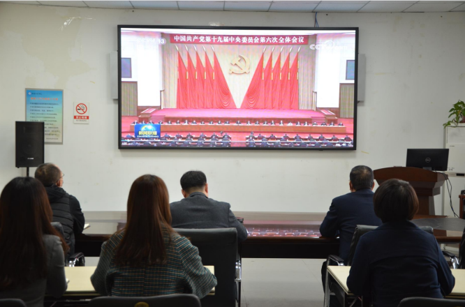 会上,全体参会人员集体观看学习了《中国共产党第十九届中央委员会第六次全体会议公报》视频。党的十九届六中全会重点研究全面总结党的百年奋斗的重大成就和历史经验问题,审议通过了《中共中央关于党的百年奋斗的重大成就和历史经验的决议》。体现了党中央对党百年奋斗的新认识,是一篇具有极强历史穿透力、思想引领力、政治动员力、时代感召力的马克思主义纲领性文献。