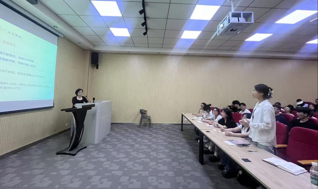 讲座中,王晓燕围绕企业财务共享中心的建设背景、运营现状、实施效果霞向学生全面阐述了企业财务共享中心的建设和实施,并结合企业实际情况分析了财务共享模式的优化方向。互动环节,同学们就财务共享服务中心中财务职能的转变、未来发展等问题进行提问和交流。张淑靖就本次讲座和实习的主要内容,结合时代发展对财务人员的需求,提出了三点要求:一是紧跟行业变革,持续提升专业能力;二是强化问题意识,主动探索解决方案;三是将所学知识融入日常工作,推动财务管理的精细化与智能化。