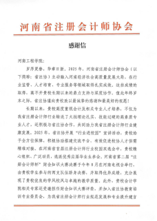 近日,河南省注册会计师协会向我校致信,对学校在人才培养、校企协同等方面给予的长期支持与深度合作表示衷心感谢,并就持续深化协作、共促行业发展表达了积极展望。